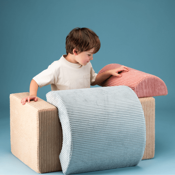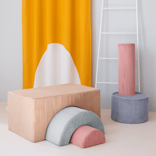Ta urocza, miętowa pufa z sztruksowego materiału to nie tylko wygodne siedzisko, ale także kreatywny zestaw do zabawy. W komplecie znajdują się trzy kolorowe, miękkie elementy w kształcie półkoli, które można układać na wiele sposobów, tworząc tunele, mosty, tęcze lub inne fantazyjne konstrukcje.