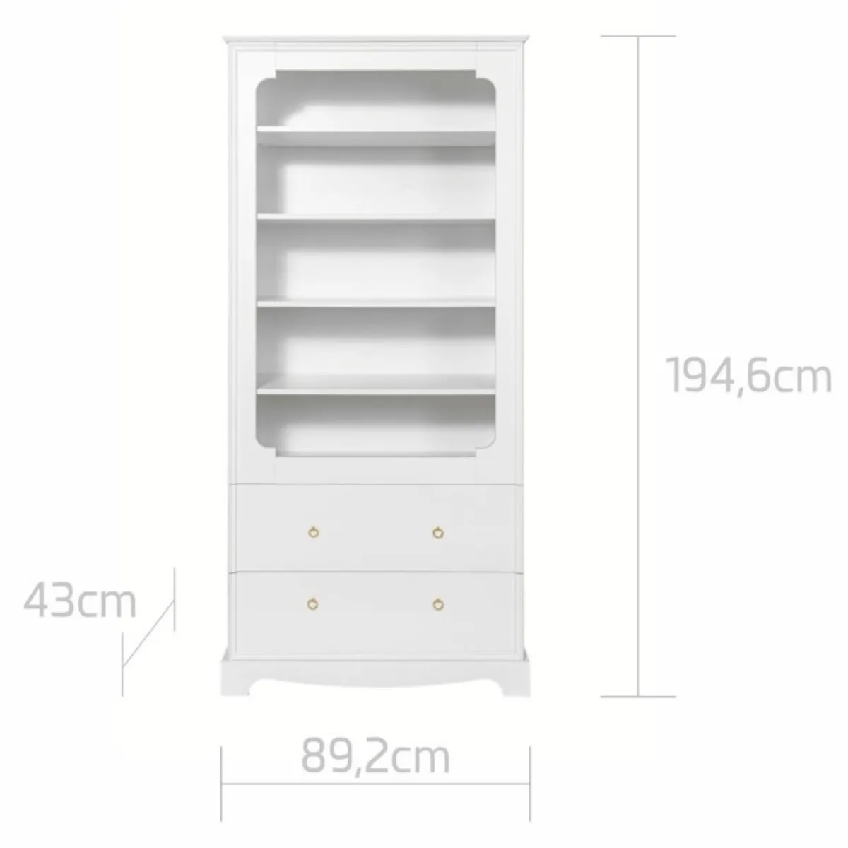 Regał dziecięcy Bellamy Royal biały ze złotymi uchwytami to elegancki i funkcjonalny mebel, który pomaga stworzyć uporządkowaną, stylową i wygodną przestrzeń w pokoju dziecka. Klasyczna forma, dekoracyjne detale, szlachetna biel oraz ozdobne złote uchwyty sprawiają, że regał doskonale prezentuje się w przytulnych, dopracowanych i ponadczasowych wnętrzach.