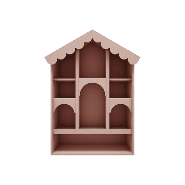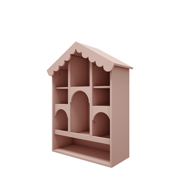 Wyjątkowy regał w kształcie domku to idealne rozwiązanie 2w1 – może pełnić funkcję zarówno regału na książki i zabawki, jak i domku dla lalek, tworząc przestrzeń do kreatywnej zabawy. Dzięki przemyślanemu układowi półek pozwala na łatwą organizację i przechowywanie ulubionych przedmiotów dziecka. Dekoracyjne wykończenia, takie jak falbankowy dach i łukowe przejścia, nadają mu wyjątkowy, bajkowy charakter.