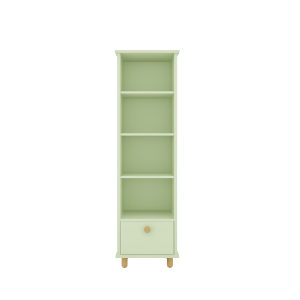 Cztery otwarte, wygodne półki zachęcają do tworzenia małych ekspozycji ulubionych książeczek, pluszaków czy dekoracji. Dzięki temu wszystkie ważne skarby są zawsze pod ręką, a jednocześnie prezentują się estetycznie i zachęcają dziecko do samodzielności.