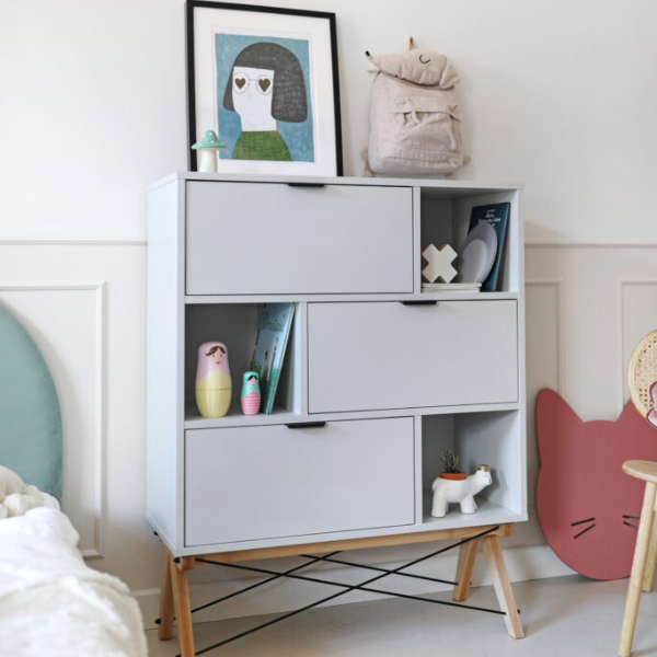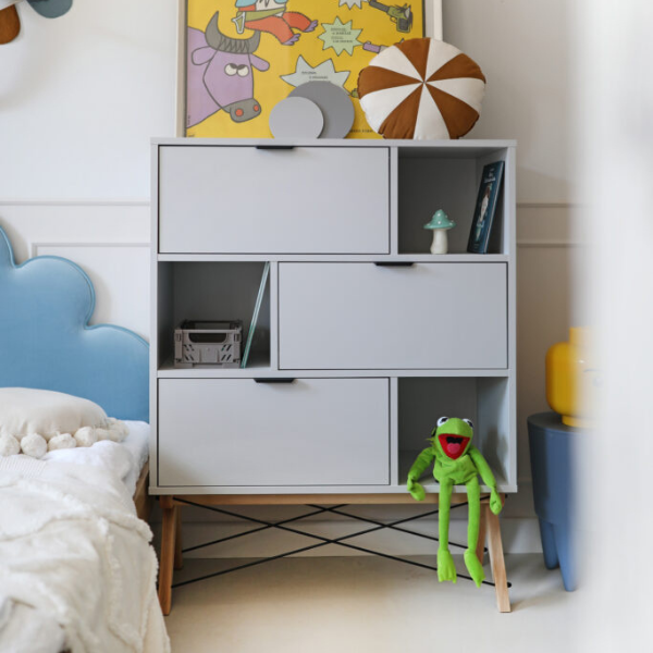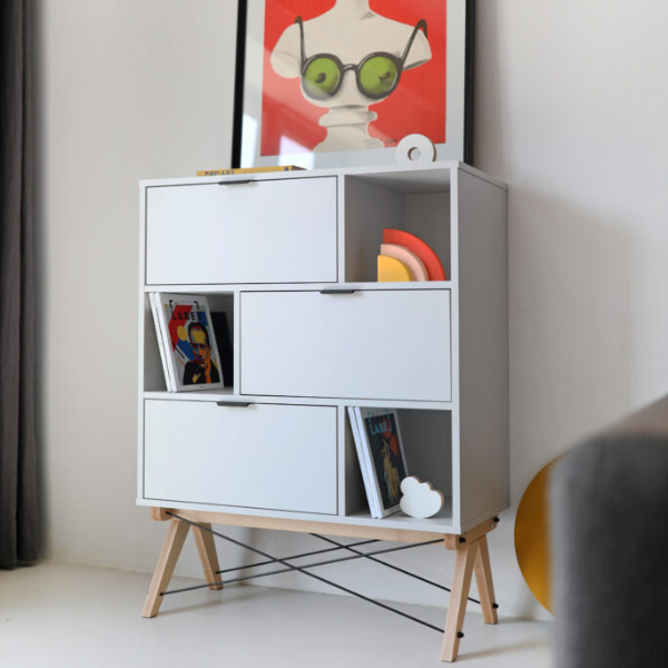 Jeśli szukasz regału, który mimo niewielkich rozmiarów pomieści wszystkie najpotrzebniejsze rzeczy, regał SMALL od Minko będzie idealnym wyborem. Ten kompaktowy mebel łączy w sobie nowoczesny, skandynawski design, staranne ręczne wykonanie oraz najwyższą jakość materiałów. To propozycja stworzona z myślą o osobach, które cenią estetykę i funkcjonalność w jednym. Regał SMALL doskonale odnajdzie się w pokoju dziecka lub nastolatka. Dzięki trzem otwartym oraz trzem zamykanym półkom pozwala wygodnie uporządkować książki, zabawki, dokumenty lub inne drobiazgi, zapewniając jednocześnie estetyczny porządek we wnętrzu. Solidny stelaż wykonany jest z naturalnego drewna – do wyboru buk lub dąb – a druciki łączące nóżki pełnią zarówno rolę konstrukcyjną, jak i dekoracyjną, nadając całości niepowtarzalnego charakteru. Co więcej, regał SMALL możesz w pełni spersonalizować – od wybarwienia półek po wykończenie elementów – wybierając spośród szerokiej palety dostępnych kolorów. To mebel, który doskonale wpisze się w każde wnętrze, nadając mu stylu, lekkości i funkcjonalności. Postaw na polski design i ręczne wykonanie – wybierz regał SMALL od Minko.