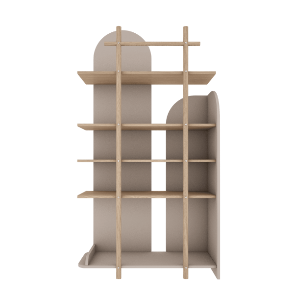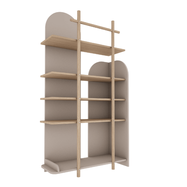Kolorystyka w odcieniach kaszmiru i dębu świetnie wpisuje się w nowoczesne i skandynawskie aranżacje, a także pięknie komponuje się z pastelami i naturalnymi akcentami. To sprawia, że regał BLOOM pasuje zarówno do pokoju maluszka, jak i starszego dziecka. Dzięki swojej modułowości mebel ten można łączyć z szerokim regałem z tej samej kolekcji, tworząc spójną i dobrze zorganizowaną przestrzeń. To świetne rozwiązanie do przechowywania, które rośnie razem z dzieckiem – od pierwszych pluszaków po szkolne lektury. Subtelny, praktyczny i ponadczasowy – taki właśnie jest regał BLOOM.