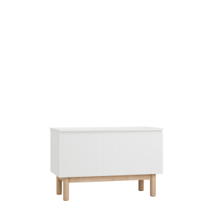 Uniwersalna biel oraz subtelne ryflowania sprawiają, że skrzynia pasuje zarówno do pokoju dziewczynki, jak i chłopca, a także do aranżacji młodzieżowych. To biała skrzynia na zabawki do pokoju dziecka, która wprowadza do wnętrza lekkość, harmonię i porządek.