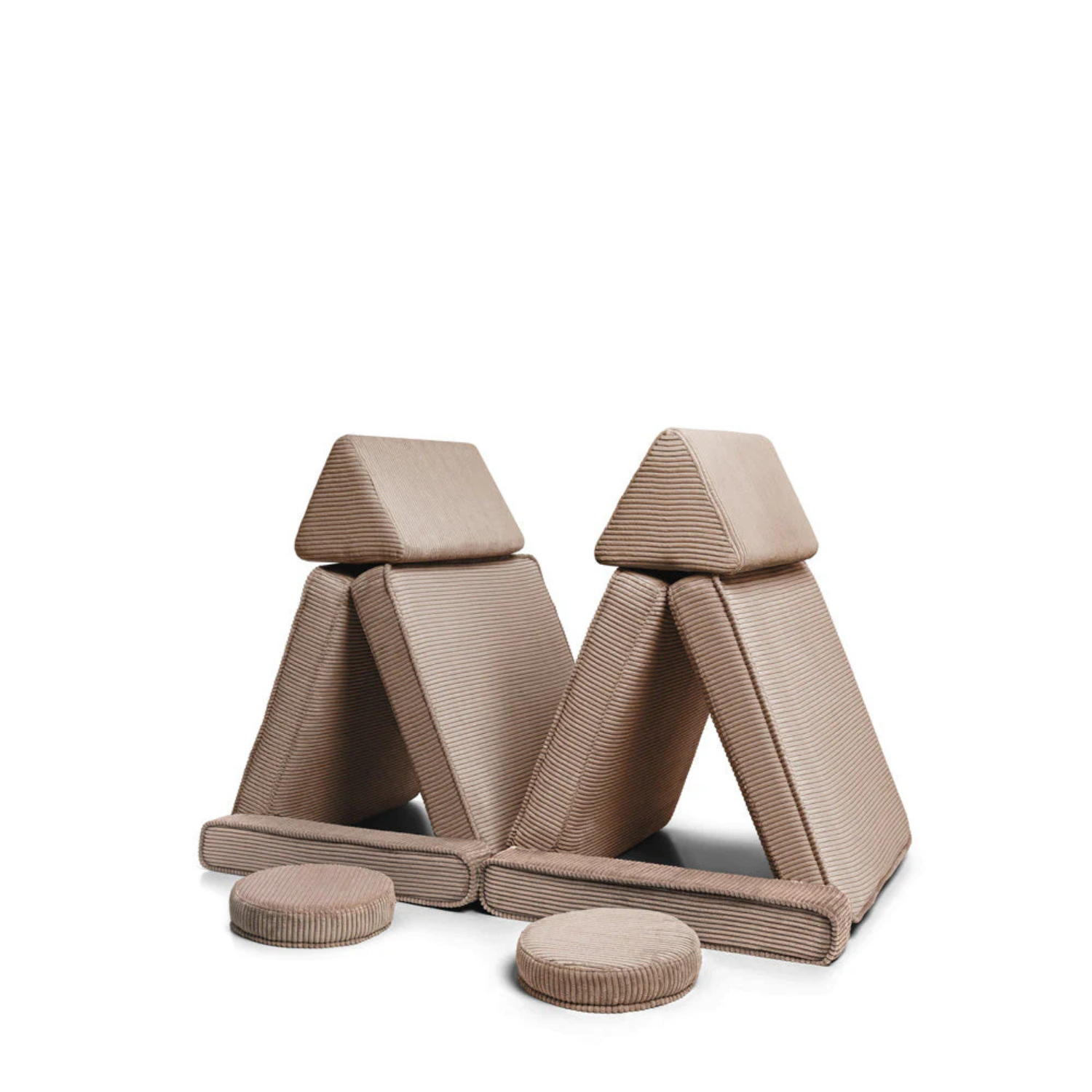 Sofa Shappy to stylowa i funkcjonalna sofa modułowa, która zachwyca połączeniem ponadczasowej estetyki sztruksu z prostym, nowoczesnym designem. Zestaw tworzy 10 elementów, oferujących niemal nieograniczone możliwości aranżacji — to wyjątkowe połączenie komfortowego mebla i kreatywnej zabawki, idealnej do codziennego życia w domu. Dzieci pokochają ją za swobodę budowania baz, zjeżdżalni i torów do zabawy, a niezwykle miękki materiał sprawi, że szybko stanie się ich ulubionym miejscem do odpoczynku i czytania. Rodzice docenią Shappy za wsparcie zdrowego ruchu, rozwój motoryki oraz kreatywności poprzez bezpieczną, konstruktywną zabawę. To mebel zaprojektowany z myślą o dzieciach w wieku 0–10 lat — od bezpiecznej maty do pierwszych kroków, przez domowy plac zabaw, aż po wygodne miejsce do relaksu i nocowanek.
