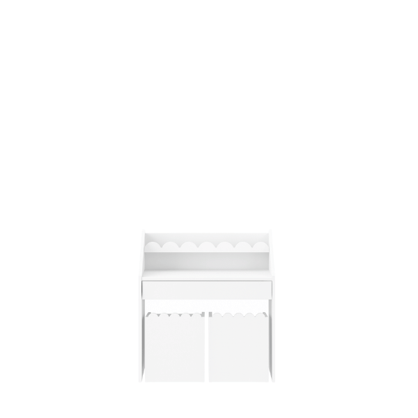 Falbanka została wykonana z lakierowanej płyty MDF, natomiast korpus z trwałej płyty laminowanej. Zastosowane materiały zostały dobrane tak, aby mebel był estetyczny, trwały i wygodny w codziennym użytkowaniu.