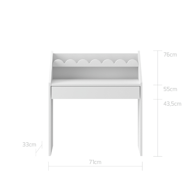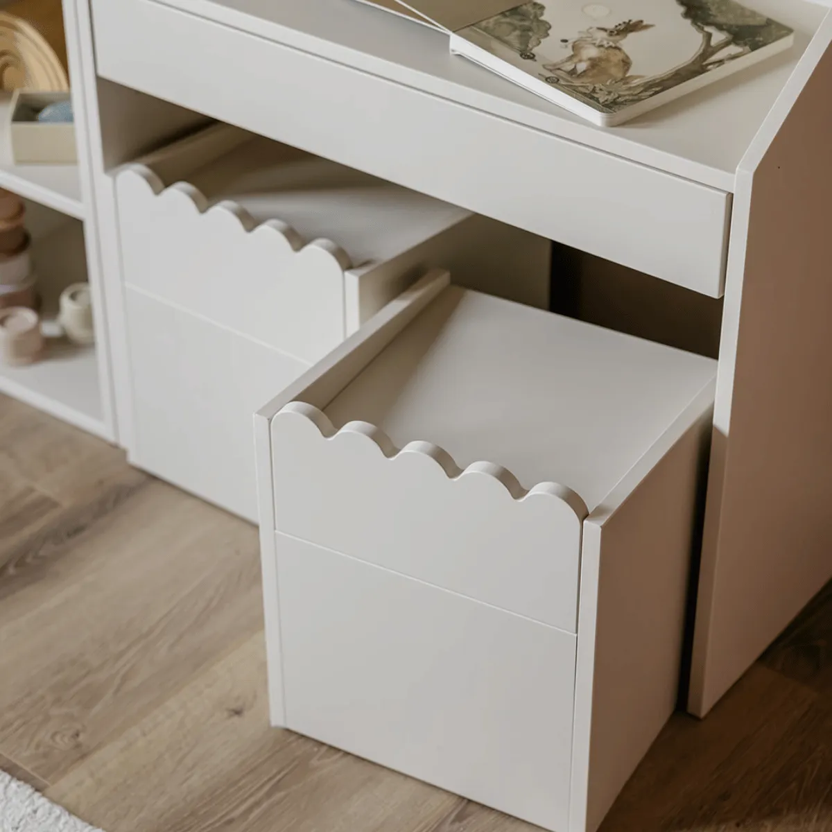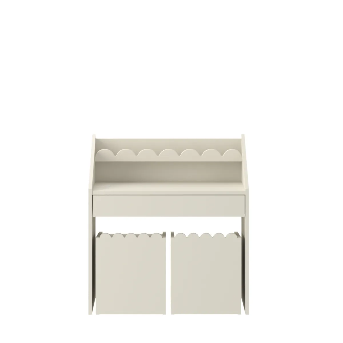 Bellamy Book Nook wyróżnia się przemyślaną formą biurka z praktyczną półką i szufladą. Taki układ pozwala dziecku mieć wszystkie potrzebne akcesoria w zasięgu ręki, zachęca do rysowania, nauki i zabawy oraz wspiera rozwijanie samodzielności już od najmłodszych lat. Kompaktowa forma sprawdza się idealnie nawet w mniejszych pokojach dziecięcych.