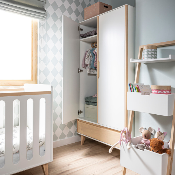 Szafa 2-drzwiowa LOOPI to połączenie oryginalnego designu lat 60. i 70. z nowoczesną funkcjonalnością. Jej elegancka forma, zaokrąglone krawędzie i stonowane kolory w zestawieniu z naturalnym drewnem brzozowym tworzą wyjątkowy, ponadczasowy mebel. Wewnątrz znajduje się przestrzeń na ubrania, a pojemna szuflada pomieści wszystkie dziecięce drobiazgi. Idealnie sprawdzi się w pokoju niemowlaka, przedszkolaka, jak i starszego dziecka. To praktyczna i stylowa szafa, która rośnie razem z dzieckiem.