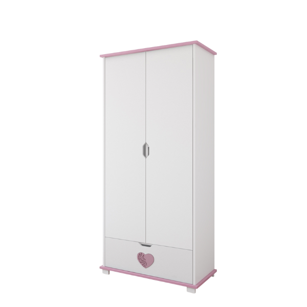 Szafa dwudrzwiowa z kolekcji SERDUSZKO to funkcjonalny i uroczy mebel, który łączy w sobie praktyczność i wyjątkowy design. Została zaprojektowana z myślą o potrzebach najmłodszych użytkowników – pojemna, bezpieczna i przyjazna w codziennym użytkowaniu. Charakterystyczne ozdobne serduszko oraz delikatne wycięcia we frontach szuflad nadają jej lekkości i subtelnego uroku, dzięki czemu idealnie wpisuje się w estetykę pokoju dziecka.