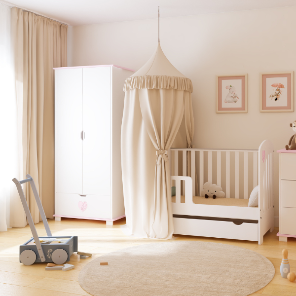 Kolekcja SERDUSZKO została stworzona po to, by rozświetlić pokój maluszka i wprowadzić do niego ciepło oraz radość. Subtelna dekoracja w formie serduszka oraz wygodne wycięcia we frontach szuflad nadają jej wyjątkowego charakteru, łącząc nowoczesny design z funkcjonalnością. To meble zaprojektowane z myślą o komforcie dzieci i estetyce współczesnych wnętrz, które rosną razem z dzieckiem.