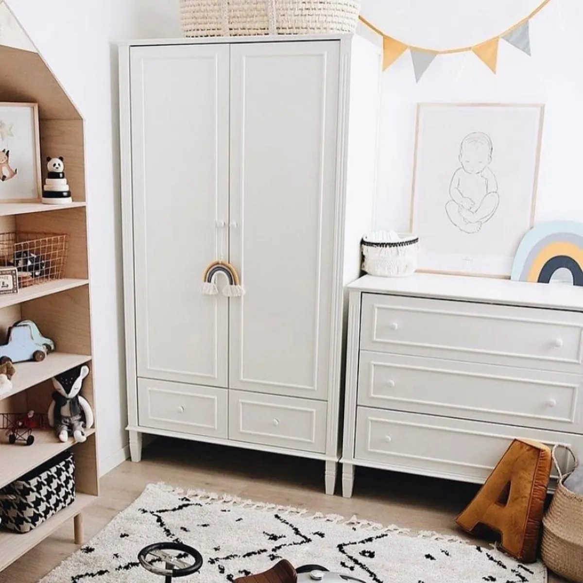 Tak, to funkcjonalna szafa do pokoju niemowlaka od pierwszych dni życia – wygodna do przechowywania ubranek, kocyków, tekstyliów i akcesoriów.