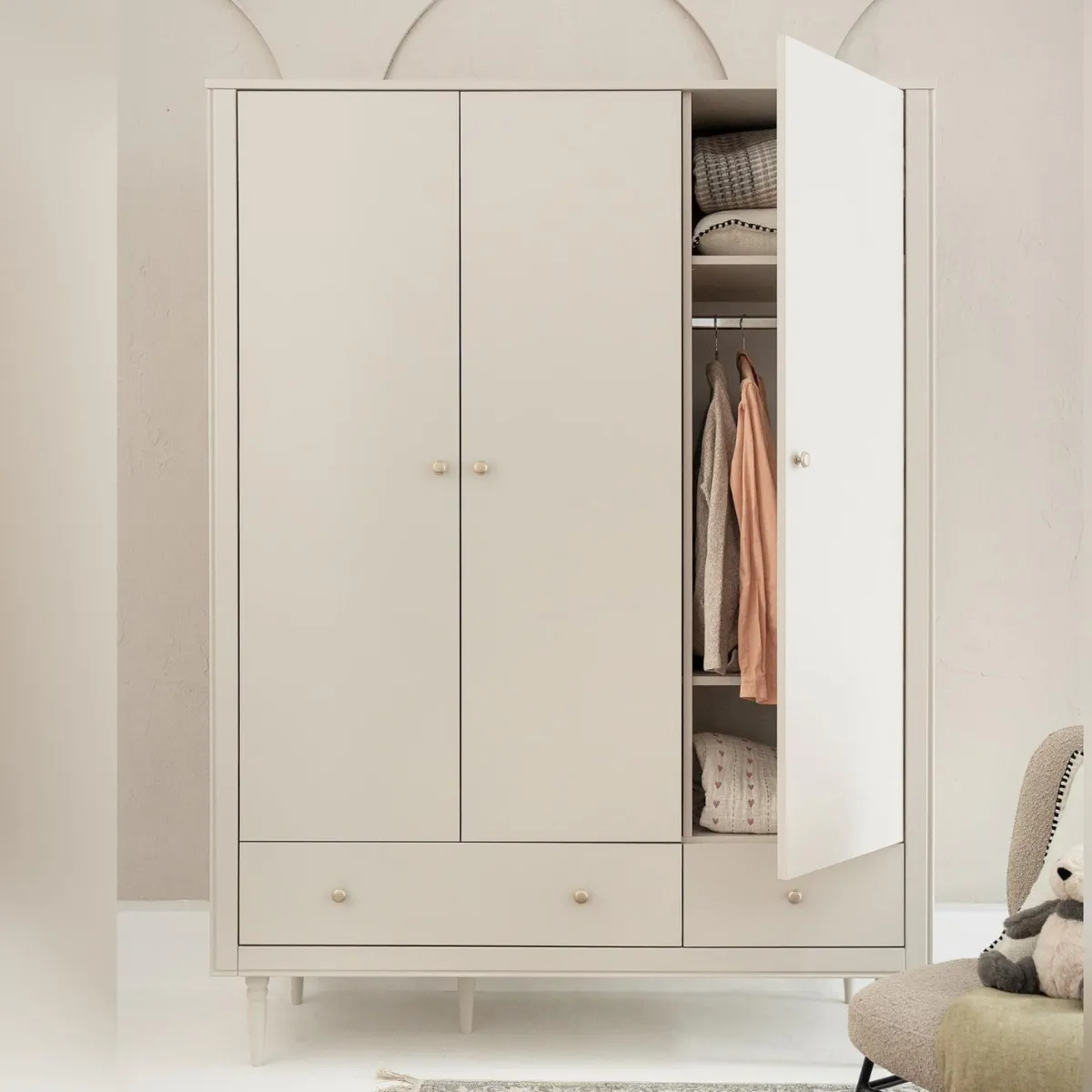 Tak – szafa została zaprojektowana jako element kolekcji Petite, dzięki czemu łatwo zestawisz ją z komodą, regałem czy łóżeczkiem.