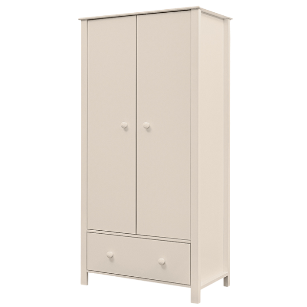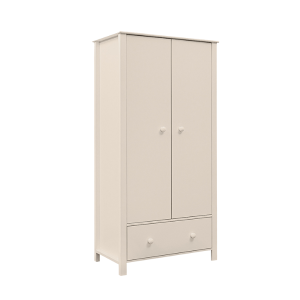 Szafa Collet 2D1S w wersji kaszmir / beż to nie tylko praktyczny mebel, ale i element świadomej aranżacji wnętrza. Jej przemyślane wnętrze – z pojemną półką, drążkiem na ubrania i dużą szufladą – pozwala wygodnie przechowywać wszystko, co ważne w codziennym życiu dziecka: ubranka, akcesoria, a nawet ulubione zabawki.