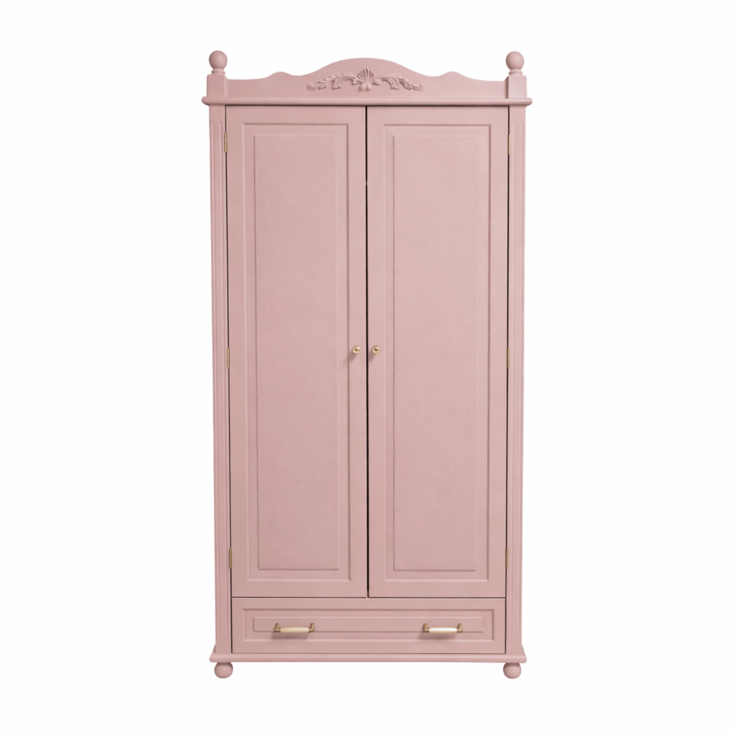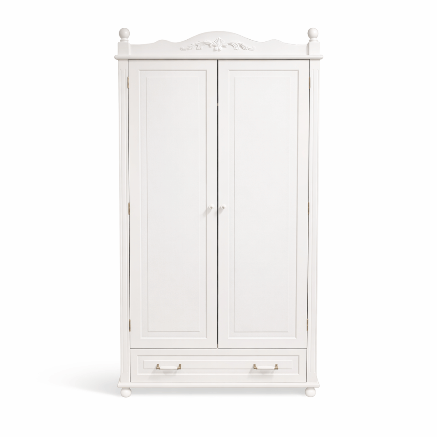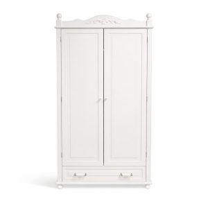 Solidne stalowe okucia ze zdobieniami w klimacie retro podkreślają charakter kolekcji VINTAGE. Szafa wyposażona jest w drążek na ubrania, praktyczne półki oraz pojemną dolną szufladę na pełnym wysuwie z systemem samodomykającym. Dzięki temu z łatwością pomieści ubrania, akcesoria i wszystkie dziecięce skarby.