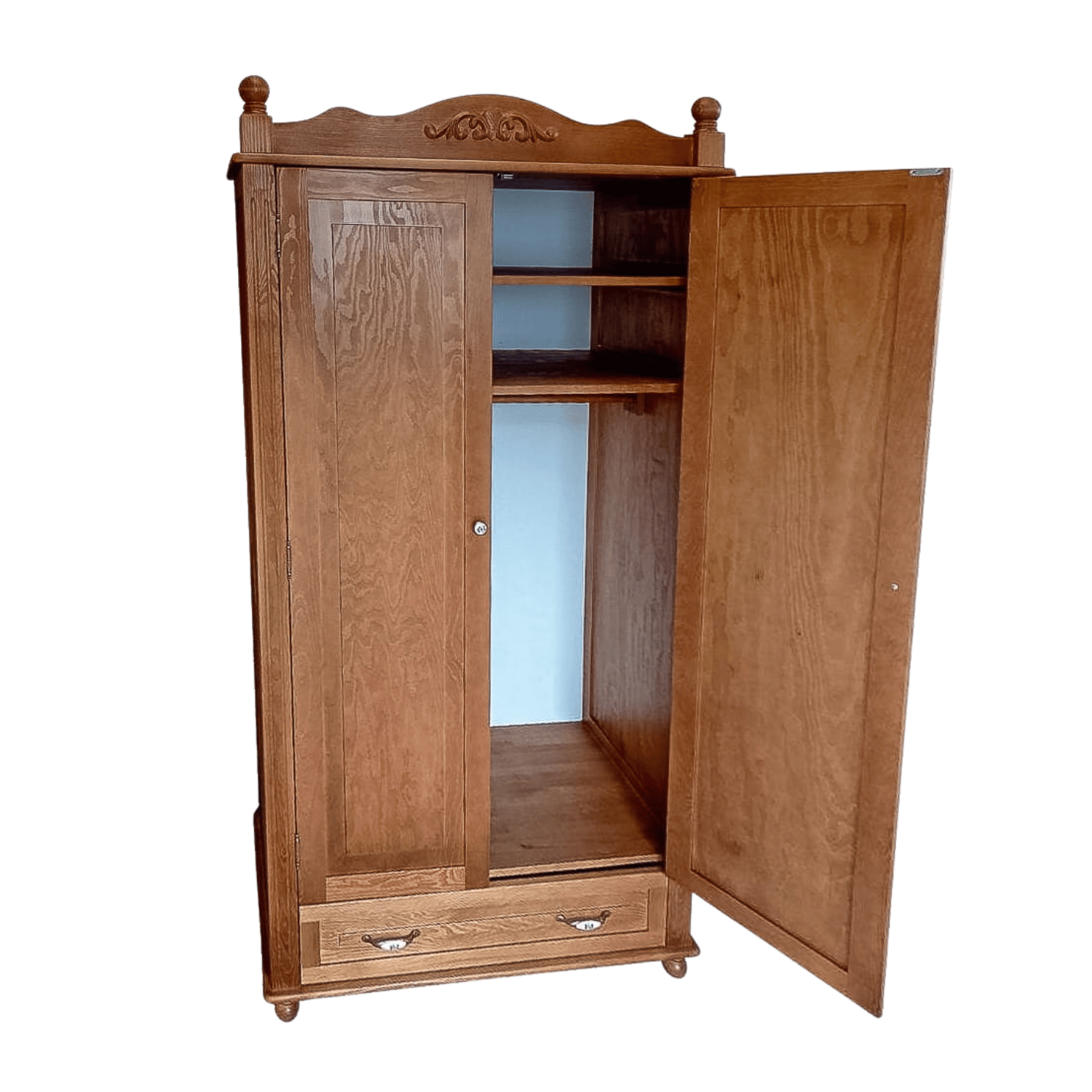 Szafa VINTAGE do pokoju dziecka w klimacie retro to idealne rozwiązanie dla rodziców ceniących niepowtarzalny wygląd i solidne wykonanie. Drewniana konstrukcja z dekoracyjnym ornamentem i eleganckimi wykończeniami doskonale komponuje się z większością dziecięcych wnętrz i aranżacji.