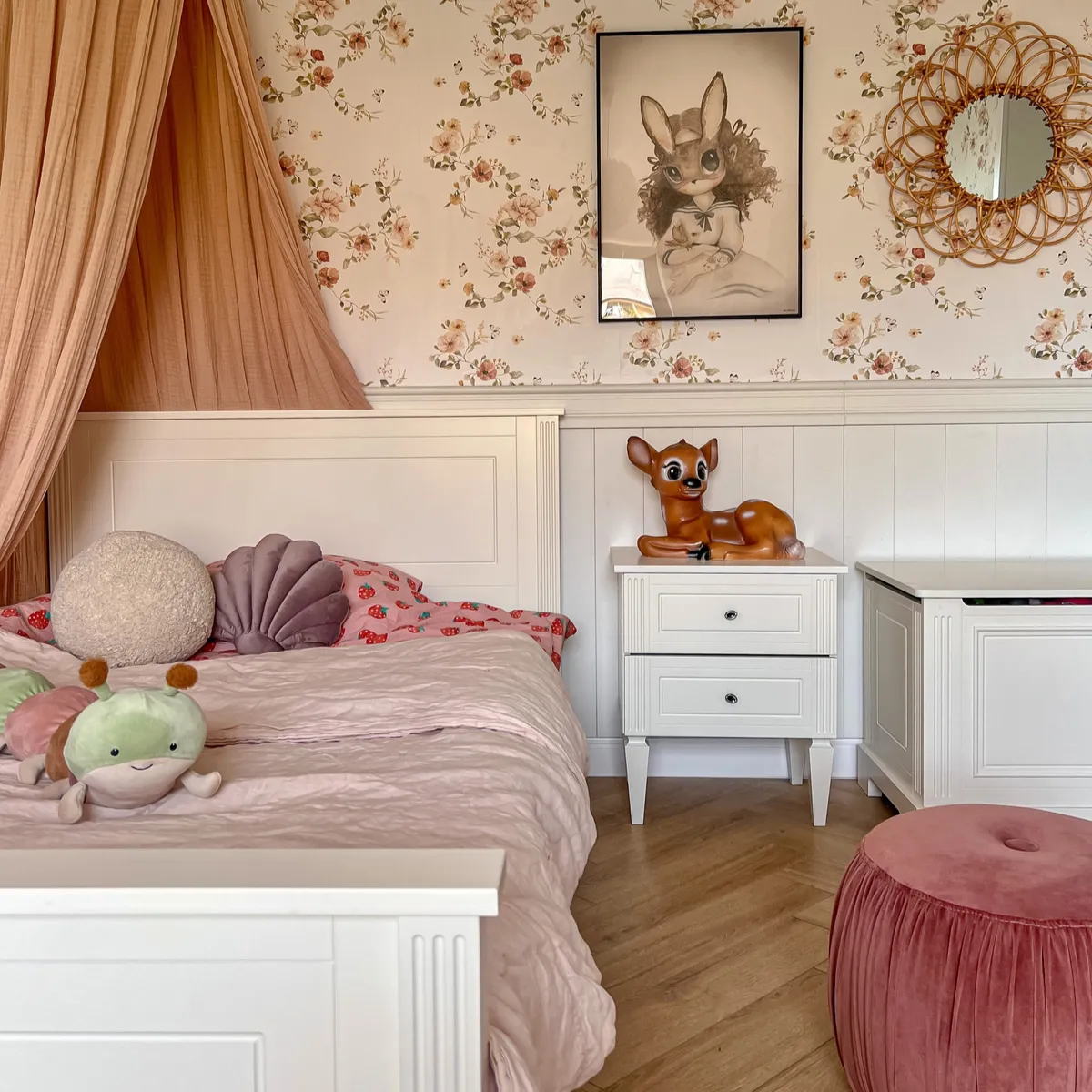 To mebel, który łączy dekoracyjny charakter z codzienną wygodą użytkowania. Szafka nocna pomaga utrzymać porządek przy łóżku, a jednocześnie dodaje wnętrzu lekkości, elegancji i przytulnego charakteru. Złamana biel kolekcji Ines White pięknie łączy się z drewnem, beżami i pastelami, dzięki czemu stolik nocny łatwo dopasować do różnych aranżacji pokoju dziecka, nastolatka lub sypialni rodziców.