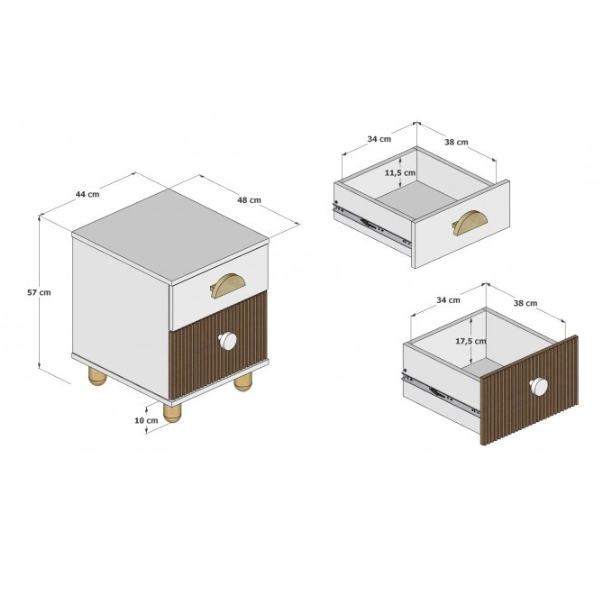 Projekt szafki został stworzony z myślą o codziennym komforcie i wygodzie użytkowania. Dwie pojemne szuflady oferują miejsce na książeczki do czytania przed snem, akcesoria, drobne zabawki lub inne osobiste skarby. Blat szafki to idealna przestrzeń na lampkę nocną, szklankę wody, budzik lub ulubioną dekorację. Wszystko, co potrzebne przed snem lub zaraz po przebudzeniu, jest zawsze w zasięgu ręki dziecka lub nastolatka.