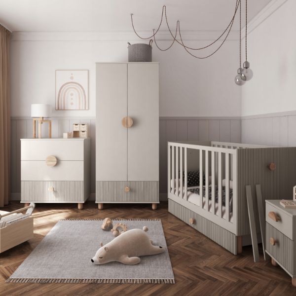 Dodatkowo możesz połączyć ją z innymi meblami z kolekcji LOFT kaszmir i stworzyć spójną, estetyczną przestrzeń bez przypadkowych elementów. Przy starszym dziecku świetnie uzupełnia łóżko LOFT kaszmir 90x200, a w pokoju niemowlaka dobrze komponuje się z łóżeczkiem LOFT kaszmir 120x60.