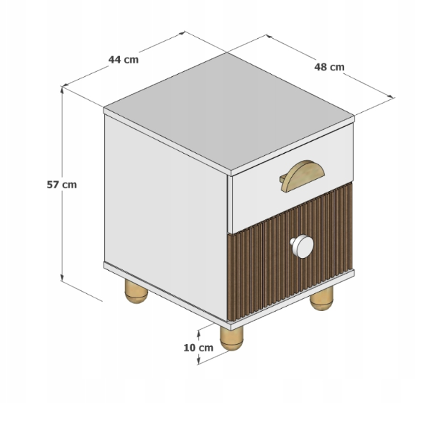 To szafka nocna z 2 szufladami, która daje szybki dostęp do wszystkiego, co najważniejsze. Książeczki, lampka, drobne zabawki, chusteczki czy akcesoria mają swoje miejsce i nie zajmują blatu.