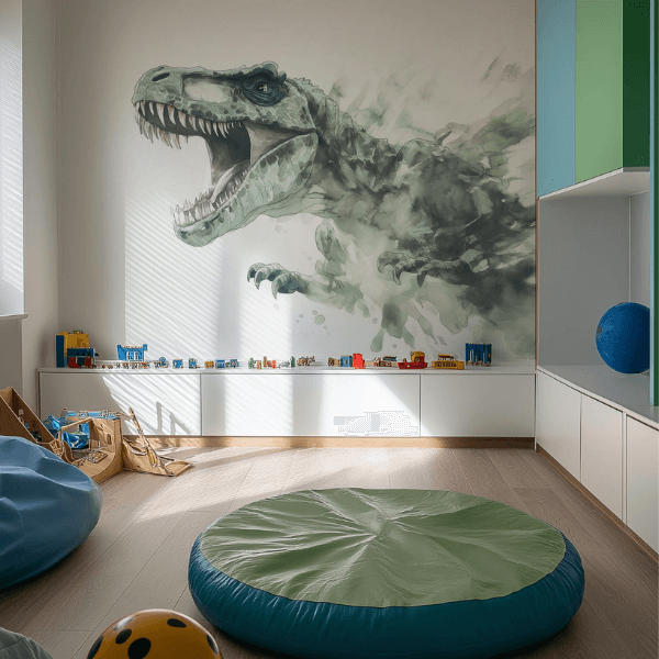 Tapeta T-REX sprawdzi się zarówno jako główny element aranżacji, jak i efektowne tło dla strefy zabawy czy nauki. To dekoracja, która rośnie razem z dzieckiem – początkowo inspiruje do zabawy, a z czasem staje się wyrazistym, stylowym akcentem wnętrza. Idealna propozycja dla małych odkrywców, którzy marzą o wielkich przygodach.
