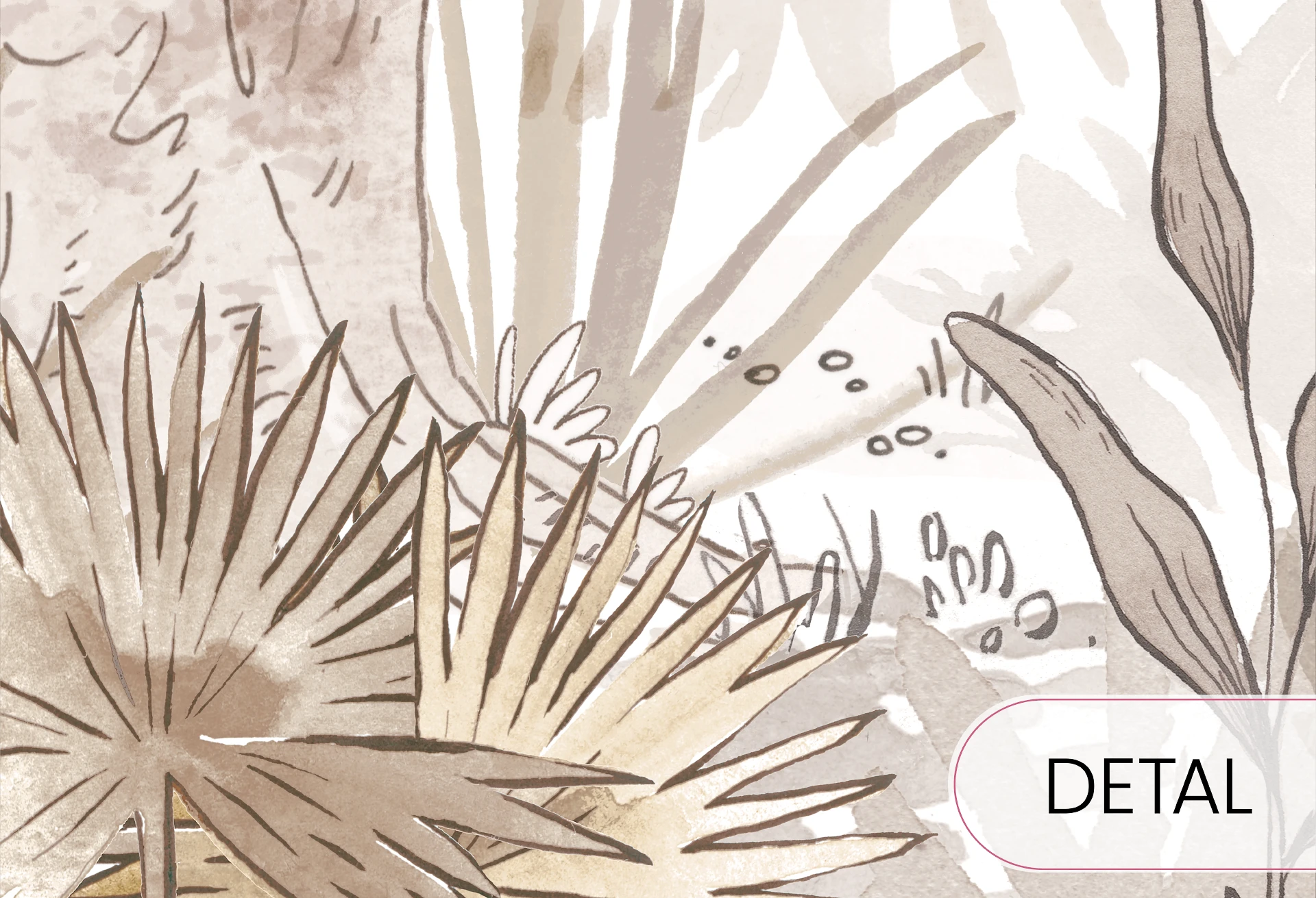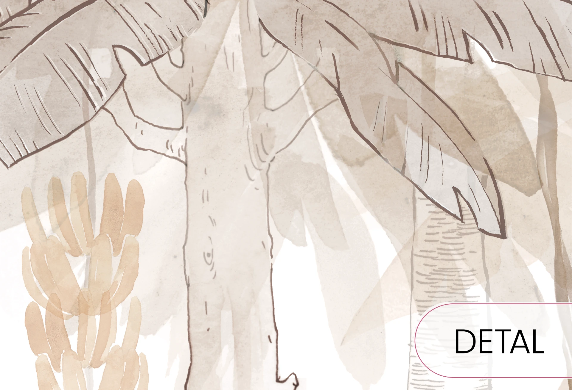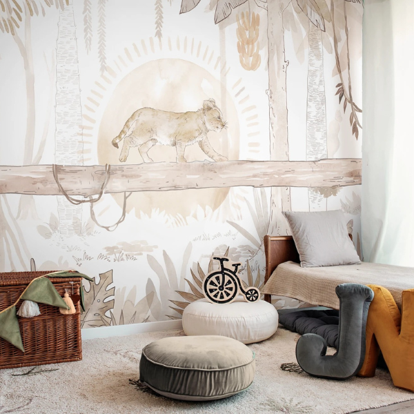 Motyw safari pobudza dziecięcą wyobraźnię, zachęcając do odkrywania świata przyrody i pierwszych opowieści o zwierzętach. Jednocześnie subtelna kreska i pastelowe odcienie sprawiają, że tapeta nie przytłacza wnętrza, lecz pięknie je dopełnia. Doskonale komponuje się z drewnianymi meblami, naturalnymi tkaninami i dodatkami w stylu boho lub skandynawskim.
