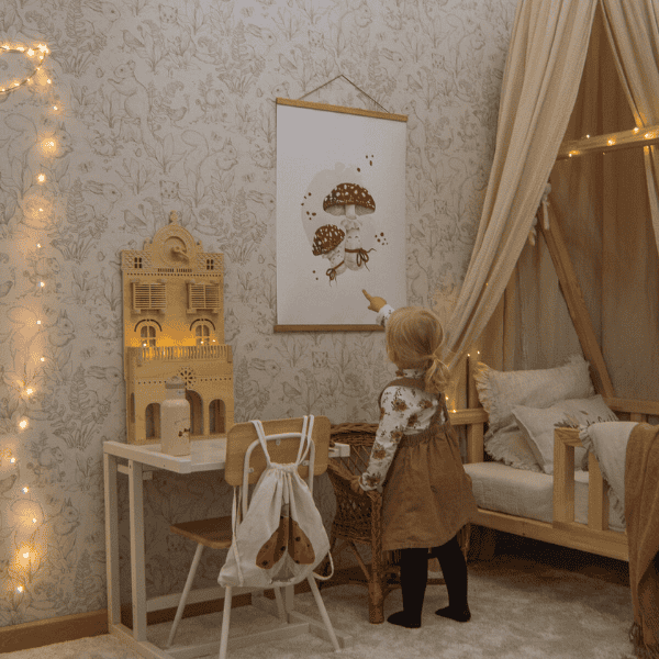 Tapeta ze zwierzętami w leśnym stylu to wyjątkowy element dekoracyjny, który wprowadza do wnętrza atmosferę spokoju, bliskości natury i subtelnej magii. Inspirowana światem fauny i leśnych krajobrazów, stanowi doskonałą bazę aranżacyjną do stworzenia przytulnej przestrzeni zarówno dla dziewczynki, jak i chłopca – niezależnie od wieku. Sprawdzi się w pokoju niemowlęcia, przedszkolaka, a także starszego dziecka, które kocha przyrodę i zwierzęta.