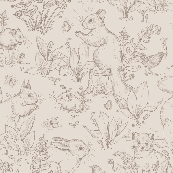 Tapeta Forest Life zwierzątka leśne - bezowa