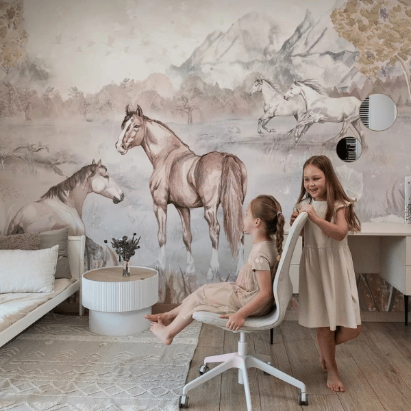 Tapeta nie tylko pięknie się prezentuje, ale również inspiruje do marzeń i zabawy – może stać się tłem dla opowieści o wolności, sile i przyjaźni ze zwierzętami. HORSE VALLEY to świetny wybór do przytulnego kącika zabaw, sypialni dziecka czy przestrzeni edukacyjnej.