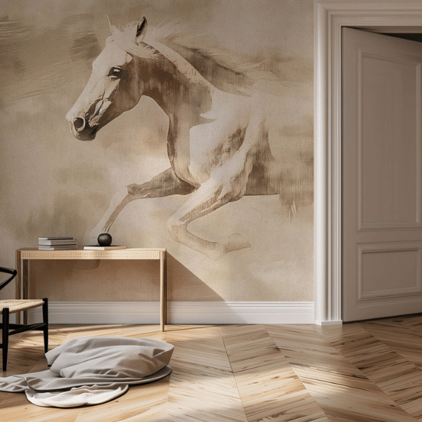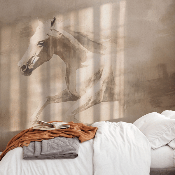 Tapeta z koniem to nie tylko dekoracja – to opowieść o wolności i bliskości z naturą, która rośnie razem z dzieckiem.