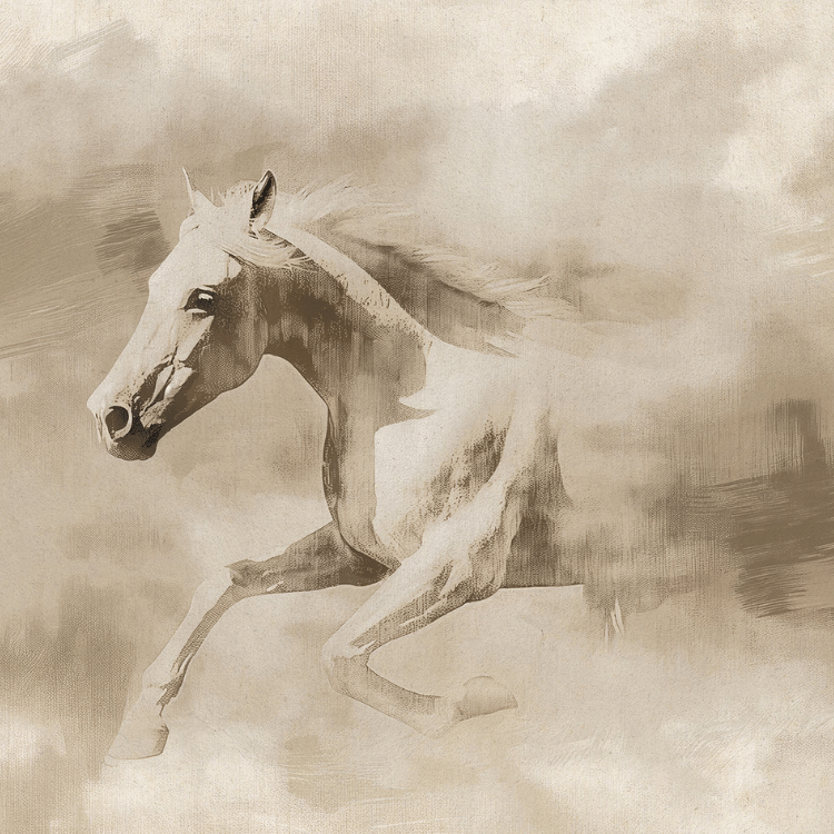 Ta niezwykła tapeta z koniem to propozycja dla dzieci, które kochają zwierzęta, marzą o stajni lub po prostu chcą mieć w swoim pokoju wyjątkowego towarzysza. Utrzymana w stonowanych odcieniach beżu, bieli i szarości, ilustracja konia przypomina obraz malowany akwarelą – delikatny, miękki i pełen spokoju.
