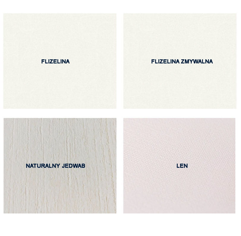 - Tapeta Premium o strukturze lnu lub naturalnego jedwabiu 350 g - To tapeta winylowa na bazie flizeliny, posiadająca strukturę płótna z dodatkiem PCV, co nadaje jej elegancki wygląd i fakturę zbliżoną do lnu lub jedwabiu. Jest łatwa do mycia przy użyciu wilgotnej szmatki i łagodnych detergentów, jednak nie zaleca się intensywnego szorowania. Tapeta nadaje się do przestrzeni wymagających eleganckiej oprawy ścian.