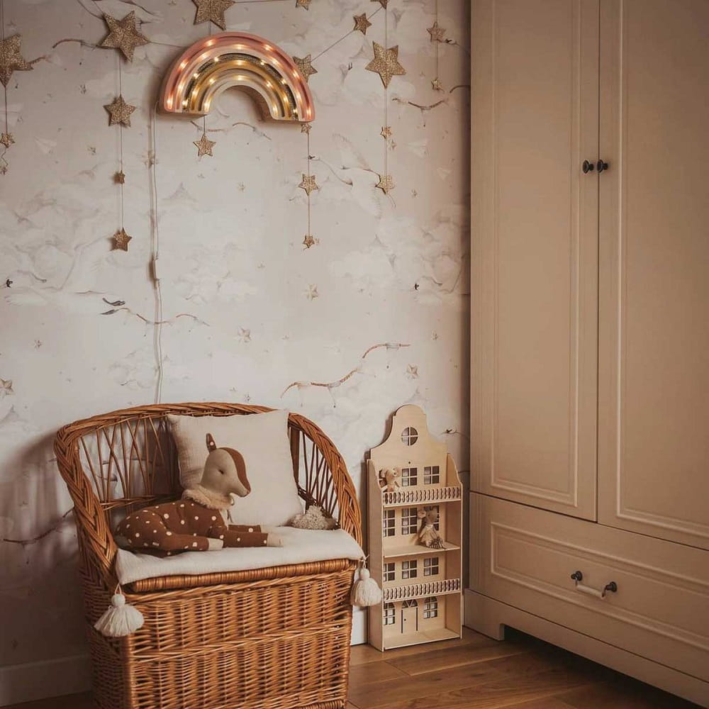 to uroczy wzór, który sprawdzi się zarówno w pokoju dziewczynek, jak i chłopców. Beżowe niebo z motywem łabędzi jest wyjątkowo delikatne i spokojne, co nadaje wnętrzu uroku i harmonii. Ten wzór jest doskonałym wyborem, jeśli chodzi o dekorację pokoju dziecka. Beżowe tło jest neutralne i łagodne, co sprawia, że pasuje do różnych rodzajów mebli i aranżacji wnętrza. Można sobie wyobrazić te łabędzie zarówno w pokoju dziewczynki, który jest urządzony z białymi meblami, jak i w pokoju chłopca z meblami w naturalnych kolorach.
