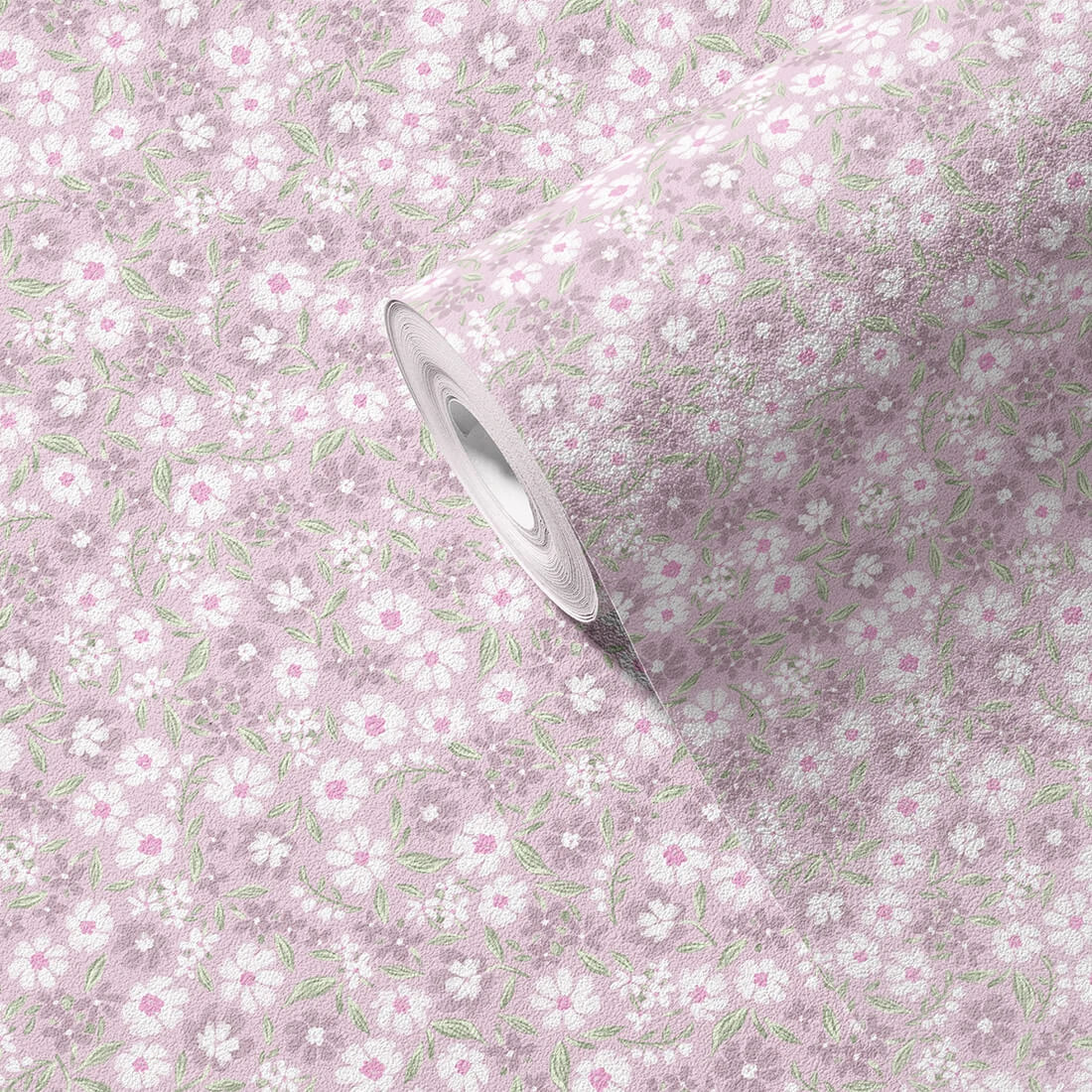 Tapeta Łąka Mini Stokrotek – drobne kwiaty tło różowe