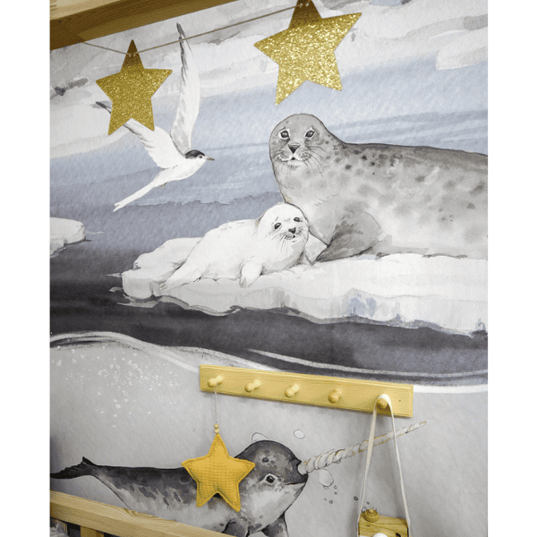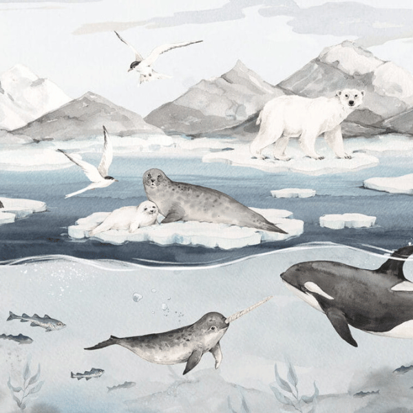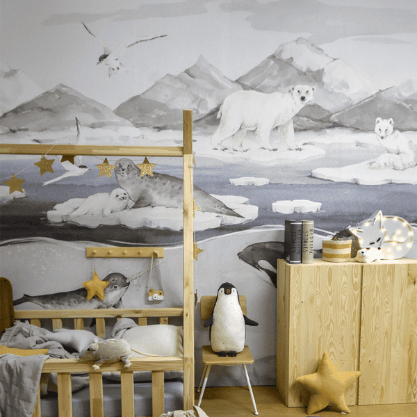 Tapeta-mural Arktyka sprawdza się jednak nie tylko jako inspiracja do rozmów o środowisku, lecz także jako wyjątkowy element aranżacji wnętrza. Szczególnie dobrze komponuje się z pokojami urządzonymi w stylu skandynawskim, który ceni jasność, prostotę i naturalność. W takiej przestrzeni świetnie prezentują się biele zestawione z odcieniami niebieskiego oraz delikatnymi szarościami. To spokojne i harmonijne trio kolorystyczne buduje atmosferę świeżości i lekkości.