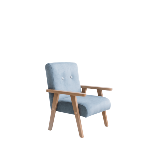 Drewniane boki i oparcia nadają meblowi naturalnego uroku, a jednocześnie zwiększają komfort użytkowania. Stabilna konstrukcja sprawia, że fotelik jest odpowiednio ciężki, co zapewnia bezpieczeństwo podczas zabawy, a miękkie, przyjemne w dotyku obicie zachęca do długiego siedzenia.