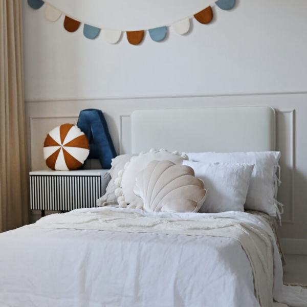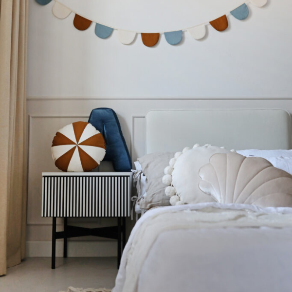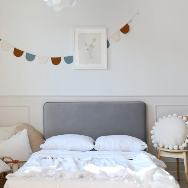 Prostokątny tapicerowany zagłówek REDU to ponadczasowy dodatek do dziecięcego pokoju, który łączy w sobie funkcjonalność, wygodę i wyjątkowy design. Jego geometryczna, prosta forma doskonale komponuje się z różnymi aranżacjami – od klasycznych po nowoczesne. Może pełnić rolę wygodnego zagłówka do łóżka lub niezależnego panelu ściennego, który nie tylko zdobi wnętrze, ale też chroni ścianę i zapewnia miękkie oparcie podczas codziennego wypoczynku. Zagłówki REDU powstają w rodzinnej manufakturze MINKO, gdzie każdy detal dopracowywany jest z najwyższą precyzją. Wykorzystujemy tkaniny najwyższej jakości, które nie tylko pięknie się prezentują, ale również posiadają certyfikat OEKO TEX – są w pełni bezpieczne dla dzieci i środowiska. To wybór, który łączy estetykę z odpowiedzialnością. Personalizacja to klucz do stworzenia wyjątkowego mebla – dlatego oferujemy szeroki wybór tkanin: aksamitne Velvie, miękkie plusze Furi, kolorowe serie Pufi oraz naturalne Natur. Dzięki temu możesz stworzyć zagłówek idealnie dopasowany do charakteru pokoju Twojego dziecka – czy to pastelowa przestrzeń dla malucha, czy bardziej stonowane wnętrze nastolatka. Zagłówek REDU nie tylko dodaje stylu, ale także zwiększa komfort i bezpieczeństwo – jego miękka powierzchnia chroni dziecko przed przypadkowymi uderzeniami. Wybierz REDU i stwórz harmonijną, piękną i funkcjonalną przestrzeń dla Twojego dziecka.