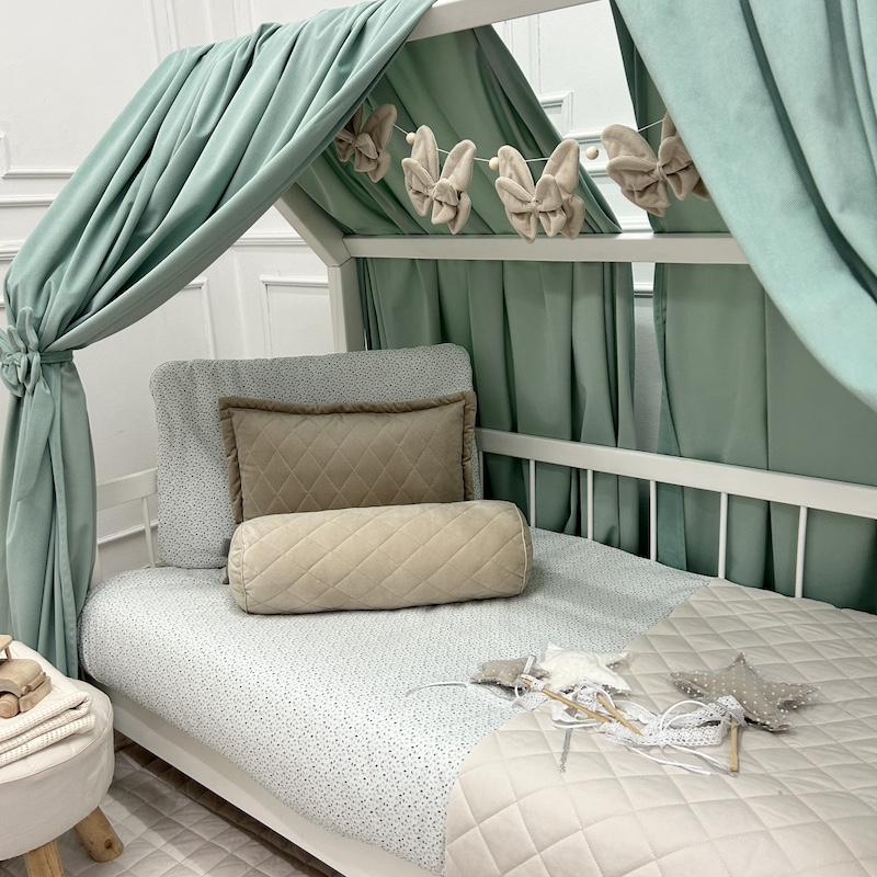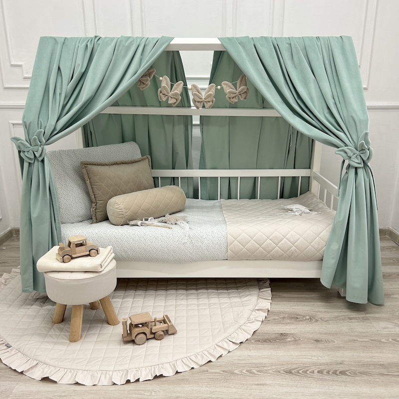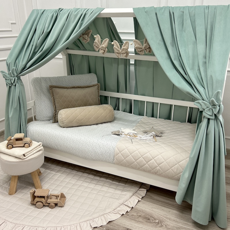 Baldachim / zasłonka na łóżko domek VELVET - miętowy