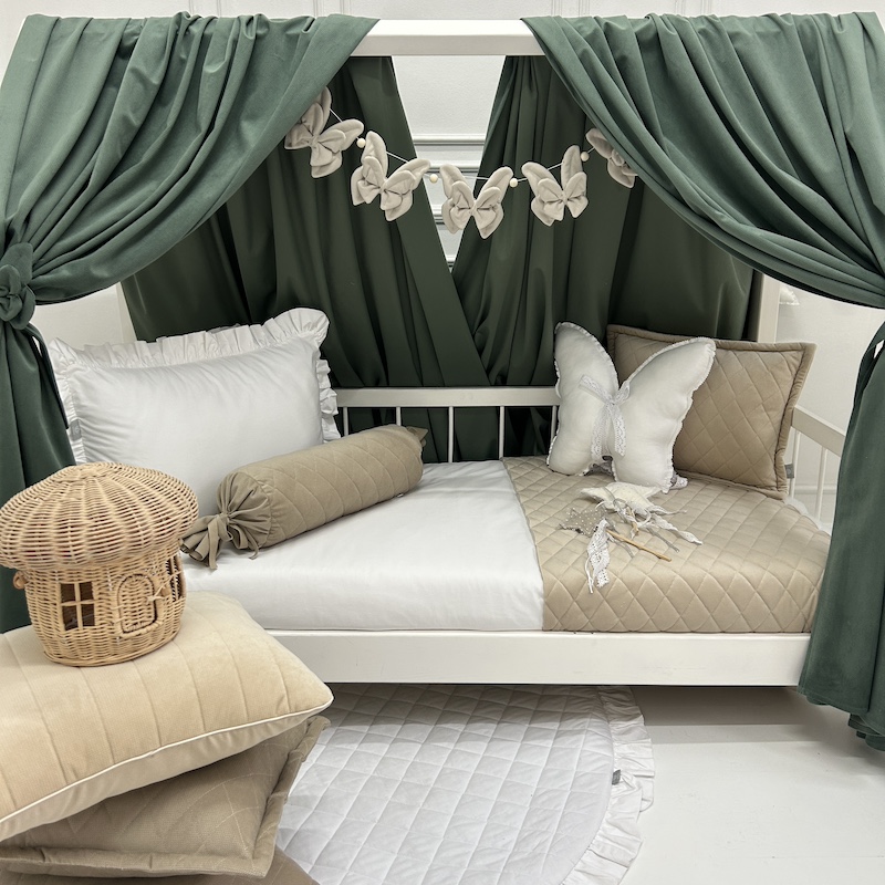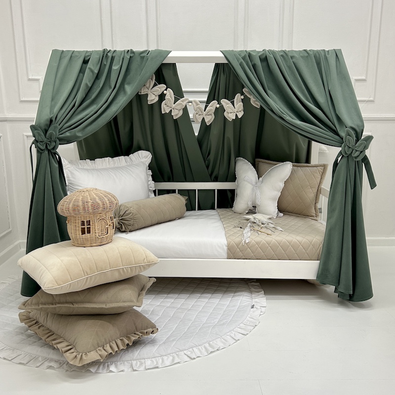 Baldachim / zasłonka na łóżko domek VELVET - butelkowa zieleń