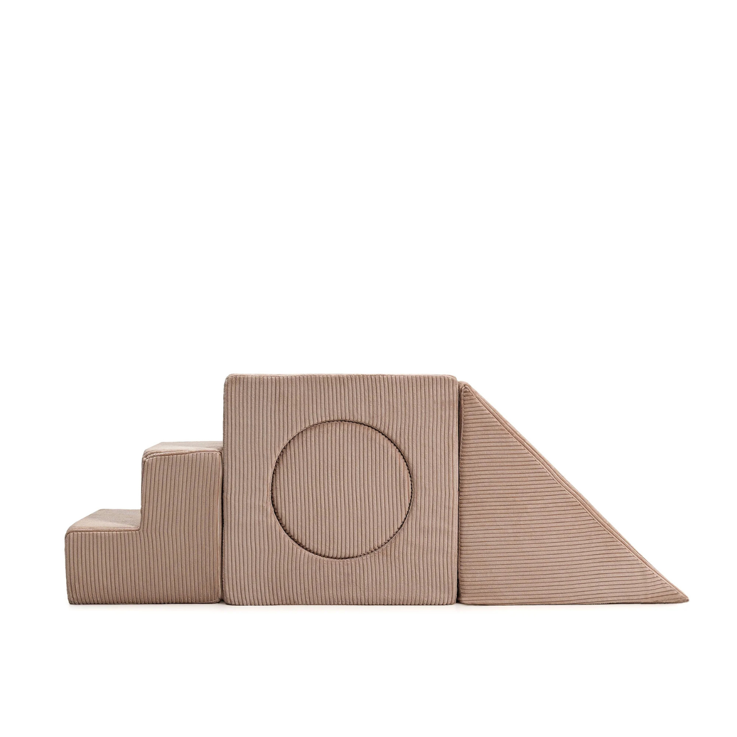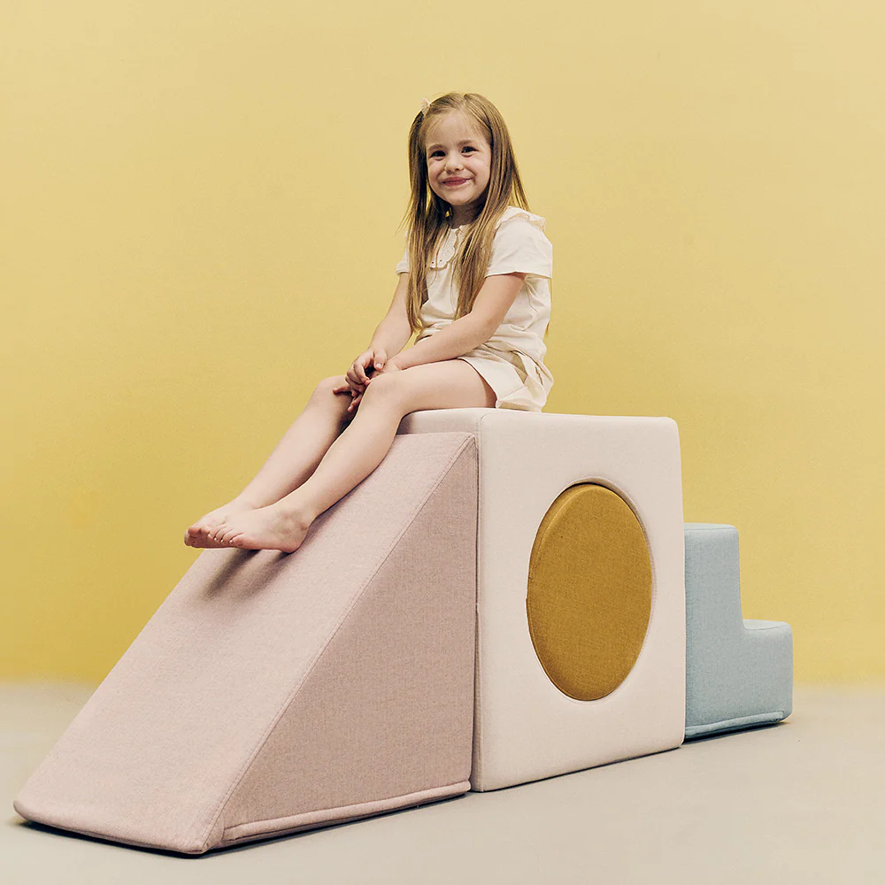 Zestaw został zaprojektowany z myślą o maksymalnej swobodzie kreatywnej zabawy i codziennej aktywności dzieci. Składa się z czterech elementów, które można dowolnie łączyć, przestawiać i wykorzystywać na wiele sposobów – do wspinania, zjeżdżania, budowania konstrukcji czy tworzenia własnych torów przeszkód.Każdy element zachęca do ruchu, rozwija motorykę, koordynację oraz wyobraźnię przestrzenną, a jednocześnie doskonale współgra z sofą do zabawy, tworząc bezpieczną i inspirującą przestrzeń do aktywnego spędzania czasu. To idealne rozwiązanie dla dzieci, które uczą się poprzez zabawę i dla rodziców, którzy szukają funkcjonalnych, rozwojowych rozwiązań do domu. Zestaw został wykonany z bezpiecznych, miękkich materiałów, odpowiednich do codziennej zabawy najmłodszych.