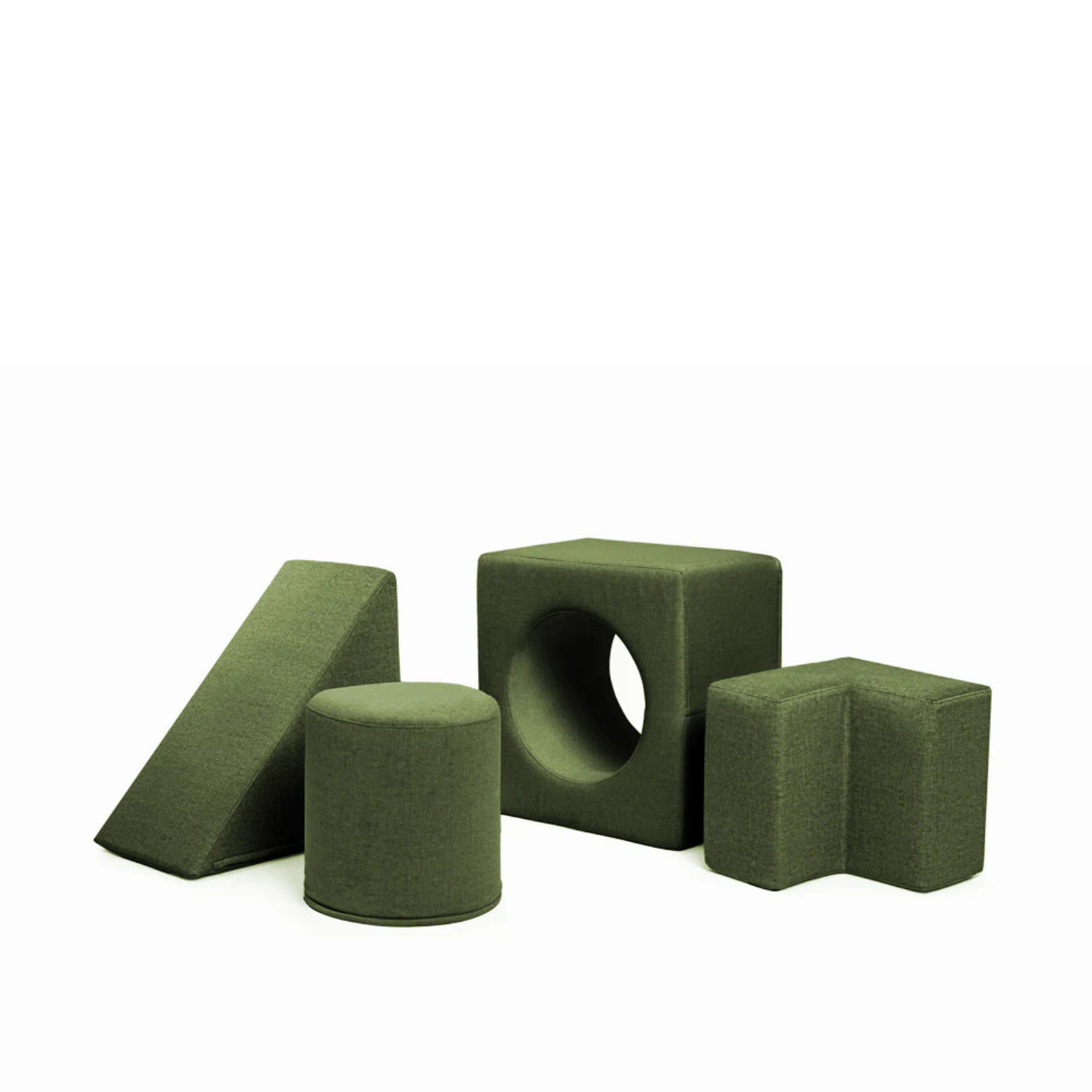 Zestaw został zaprojektowany z myślą o maksymalnej swobodzie kreatywnej zabawy i codziennej aktywności dzieci. Składa się z czterech elementów, które można dowolnie łączyć, przestawiać i wykorzystywać na wiele sposobów – do wspinania, zjeżdżania, budowania konstrukcji czy tworzenia własnych torów przeszkód.Każdy element zachęca do ruchu, rozwija motorykę, koordynację oraz wyobraźnię przestrzenną, a jednocześnie doskonale współgra z sofą do zabawy, tworząc bezpieczną i inspirującą przestrzeń do aktywnego spędzania czasu. To idealne rozwiązanie dla dzieci, które uczą się poprzez zabawę i dla rodziców, którzy szukają funkcjonalnych, rozwojowych rozwiązań do domu. Zestaw został wykonany z bezpiecznych, miękkich materiałów, odpowiednich do codziennej zabawy najmłodszych.